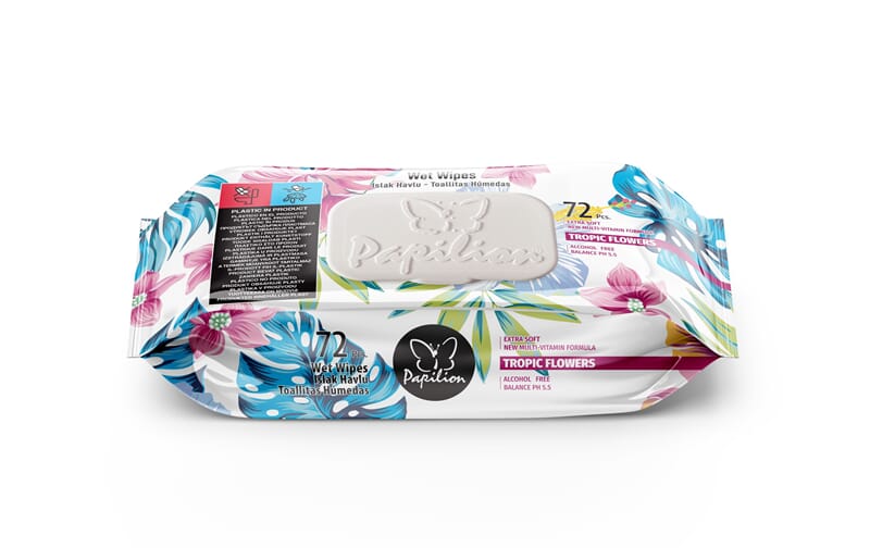 Papilion Wet Wipe Tropical Flower 72pc